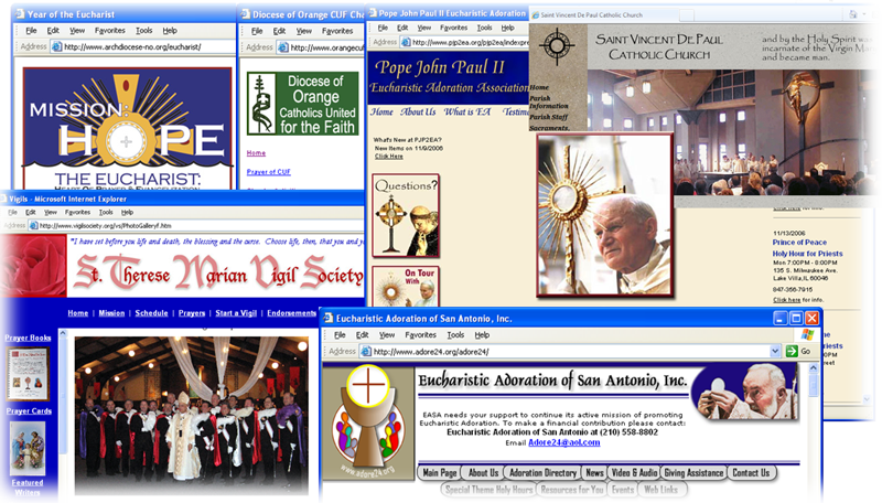 We believe, along with Blessed Mother Teresa and Blessed John Paul II, two heros and exemplars to us all, and two saints particularly identified within the Knights of Columbus as peoples whose dreams should be fulfilled, that Eucharistic Adoration is the key to world renewal and is a key part of the lay apostolote explained in the Vatican II Decree on the Laity. We want so much to help those trying to make this happen! We pray that all the Catholic world will participate in regularly scheduled holy hours of Eucharistic Adoration. We live for it. We pray for it. We sacrifice for it. Let us us help you.