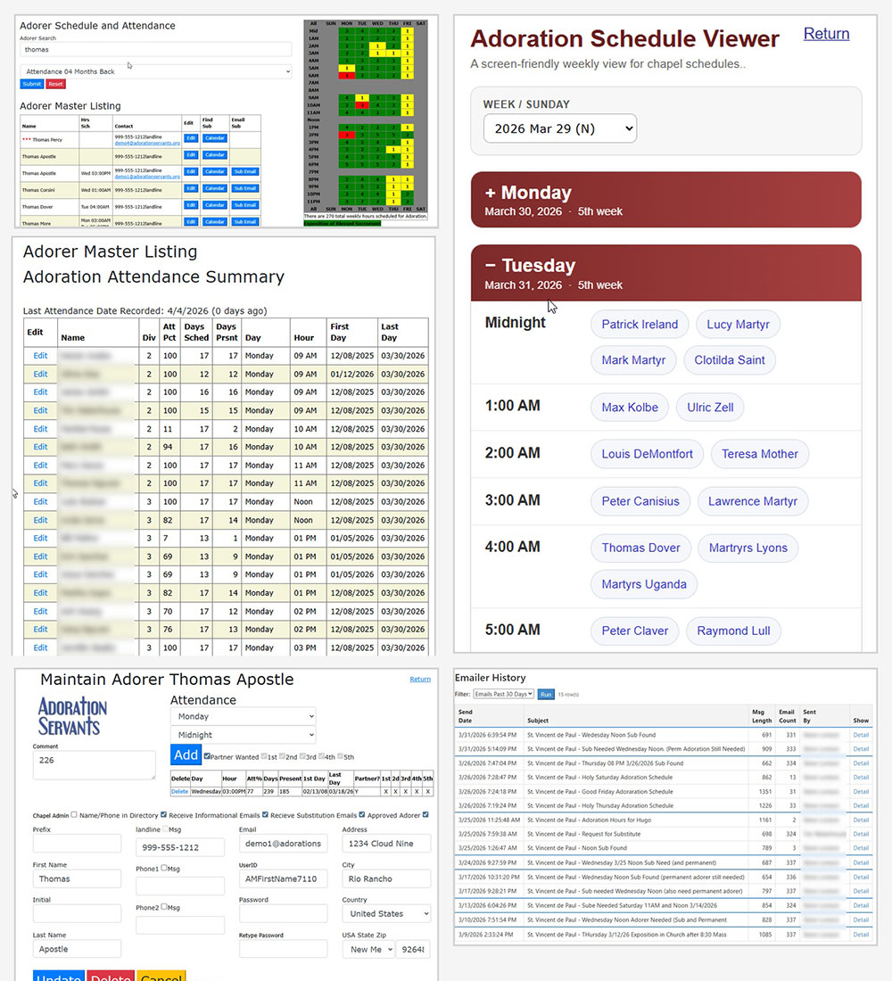 - Chapel scheduling and adorer sign-ups