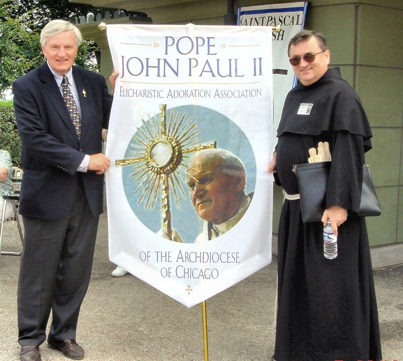The very next day, Fr. John Grigus, OFM Conv. (RIP), introduced himself to Steve. Upon learning that Steve owned a computer consulting company, he asked him to review the Chicago Adoration website. From that point Steve became busy with the Pope John Paull II Eucharistic Adoration Associate of the Archdiocese of Chicago working extensively on Adoration efforts due St John Paul II's "Year of the Eucharist"